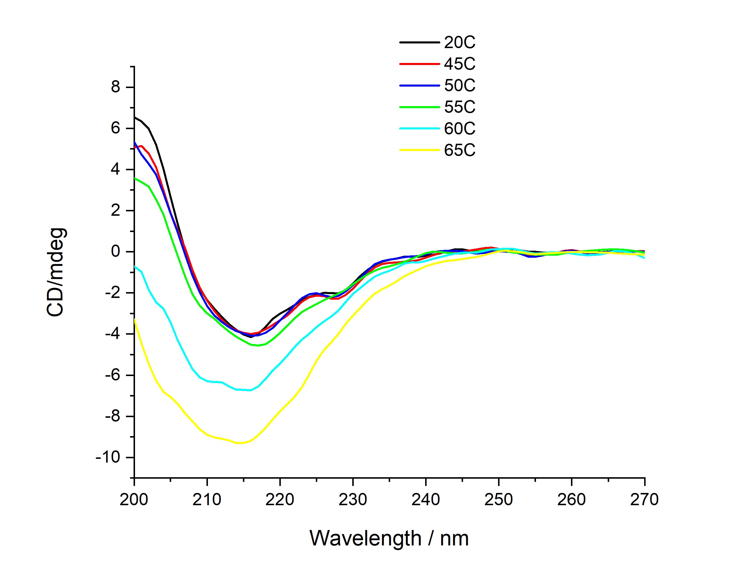 NPL used Circular Dichroism (CD) spectroscopy to predict immunoassay performance by determining structural changes due to the conjugation process. Though ambient CD is powerful in capturing structural changes, it was not effective in differentiating subtle structural changes between conjugates which depend on the type and number of labels incorporated and conjugation chemistry. Therefore, NPL evaluated the stability as the temperature was gradually increased and determined the temperature at which a structural change was observed.